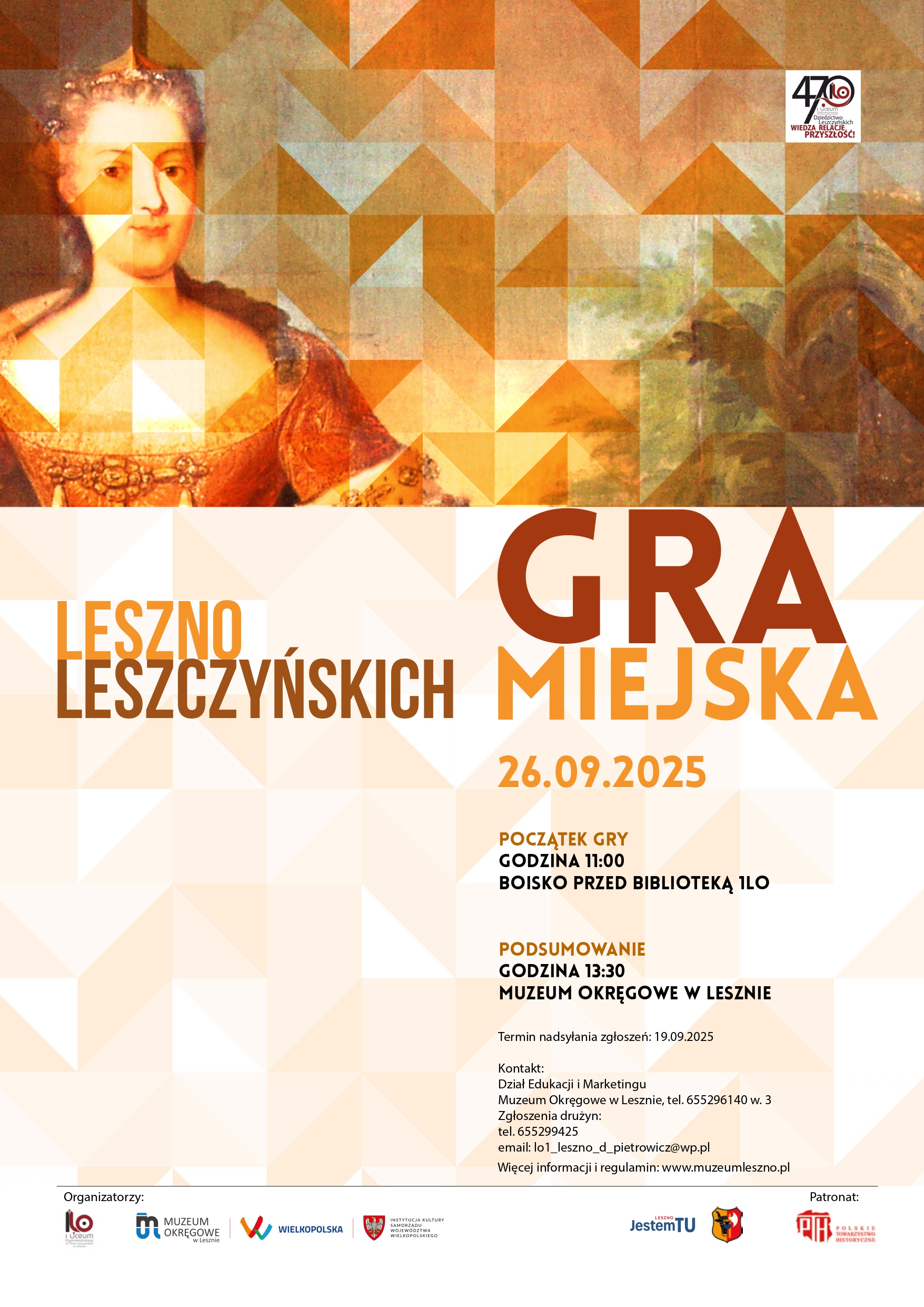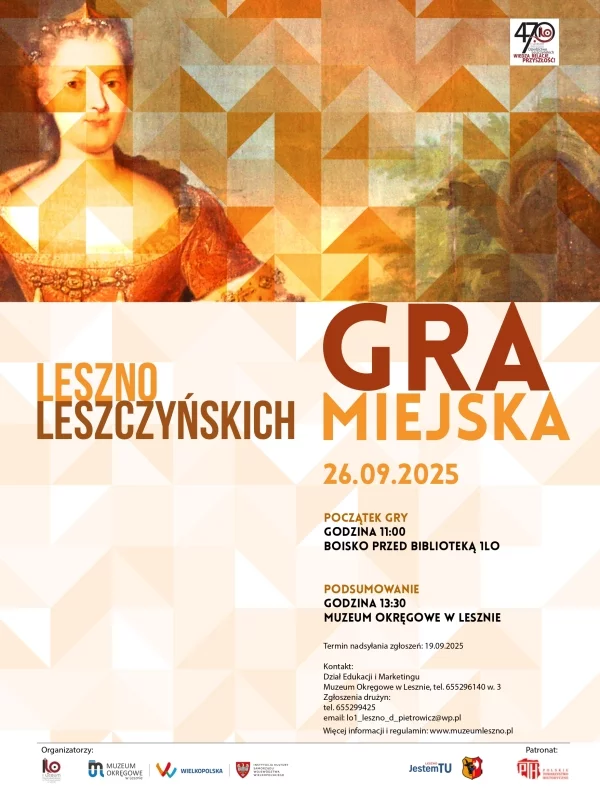 On 26.09.2025, we invite you to the next edition of the Leszno of Leszczyński Family competition for high school students. This extremely engaging town game is organized every year in cooperation with the Leszczyński Family High School in Leszno.