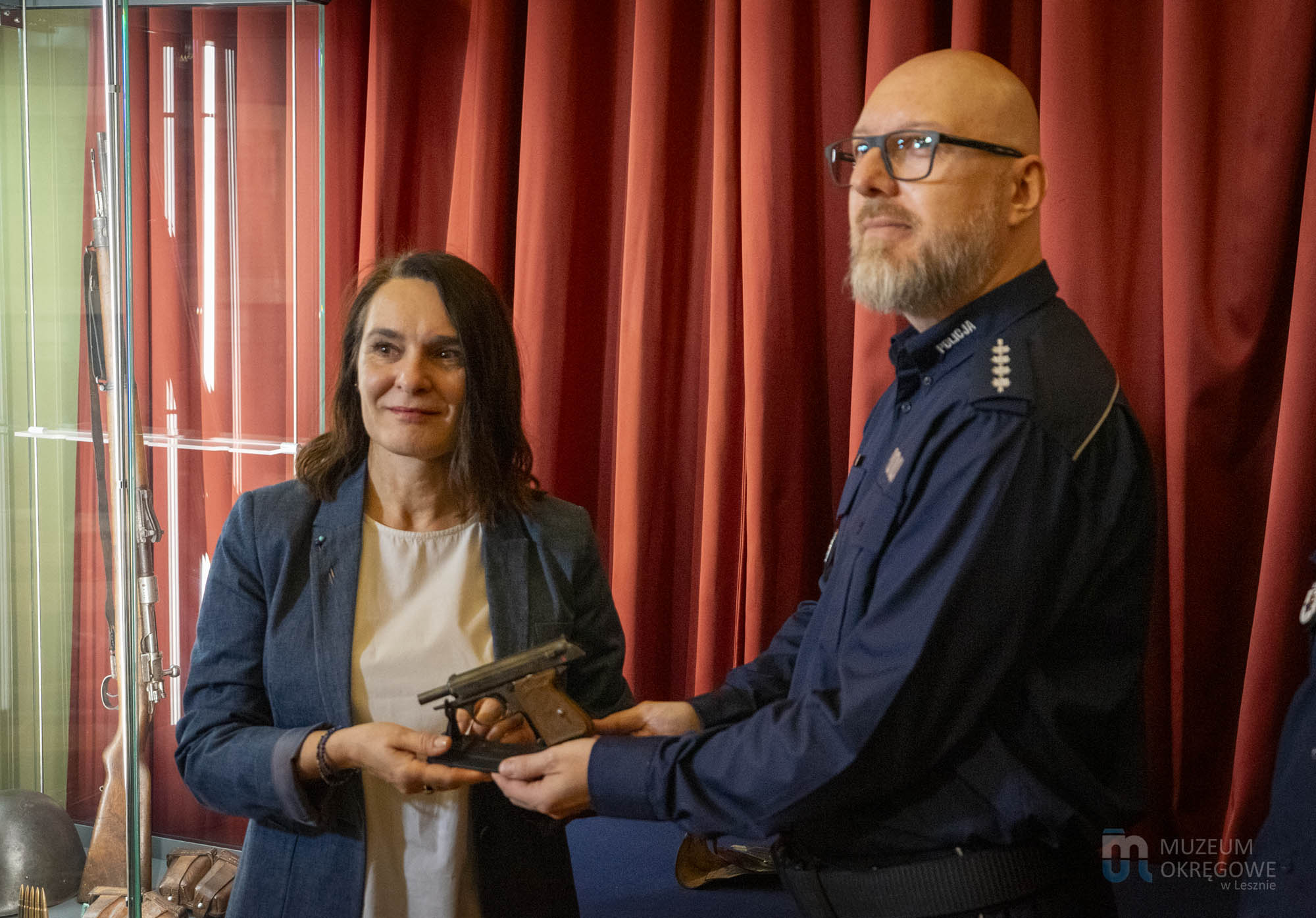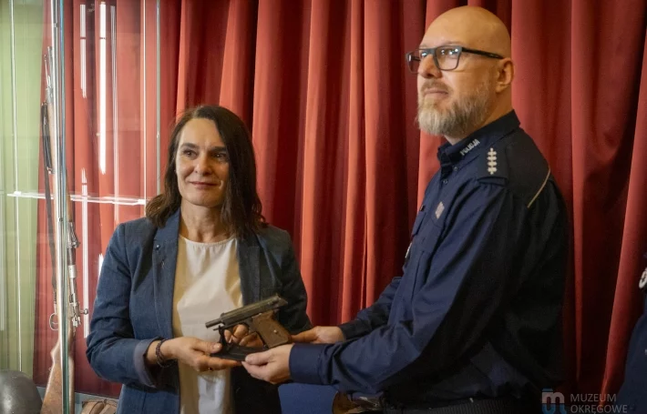 This is a valuable addition to the Museum's military collection, which is regularly enriched with new objects. The meeting was attended by, among others, Dr. Kamila Szymańska – Director of the District Museum in Leszno and Junior Inspector Paweł Prałat – First Deputy Municipal Police Commander in Leszno. We would like to remind you that a few years ago, thanks to cooperation with the Police, the Mauser rifle was also added to our collection.Today's event is another example of how we work together to preserve historical memorabilia.