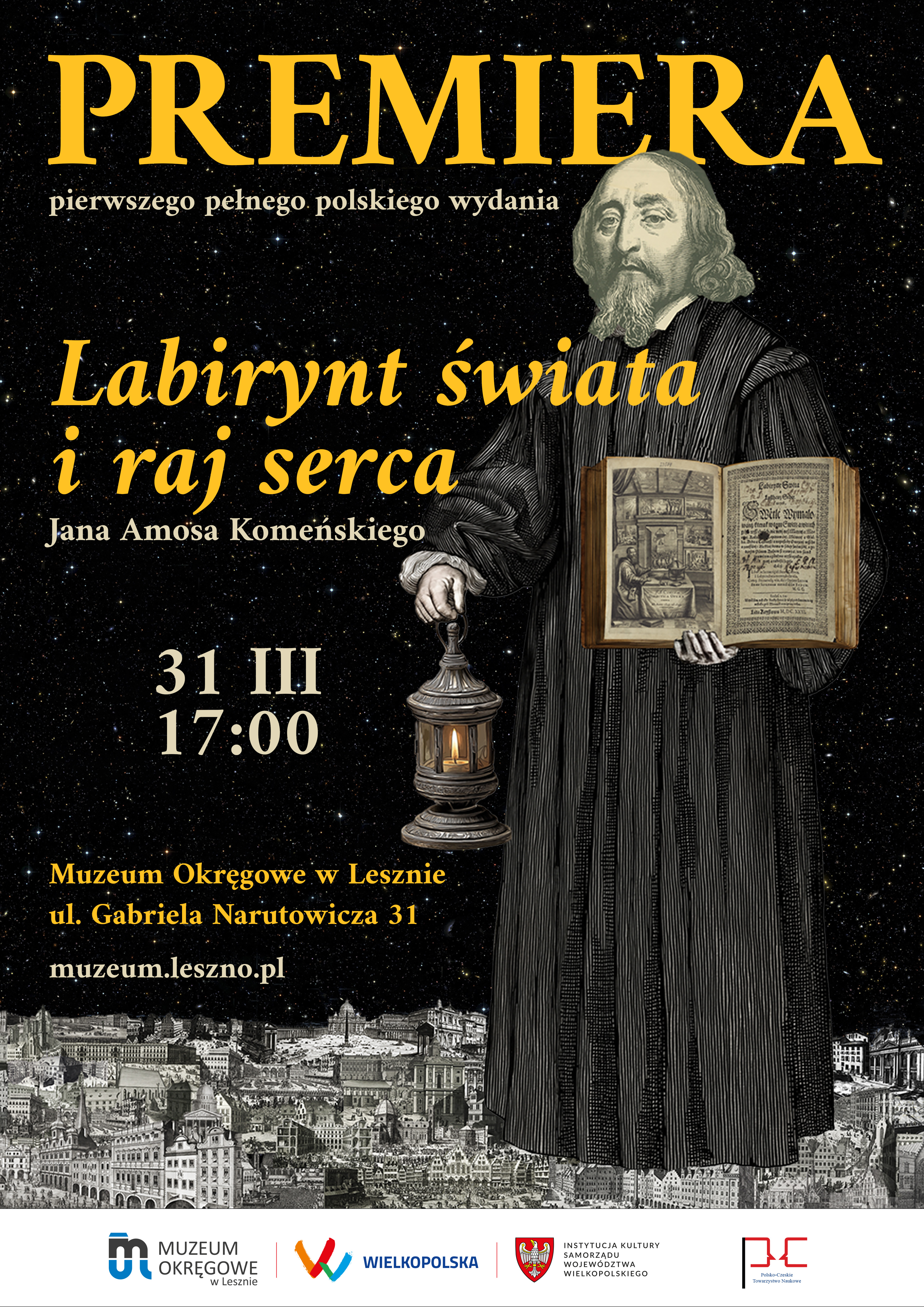 „Labirynt świata i raj serca” to najważniejsze dzieło dawnej literatury czeskiej, niosące uniwersalne przesłanie o poszukiwaniu sensu życia, harmonii i duchowego spokoju. Autor – Jan Amos Komeński (1592–1670), ostatni biskup Jednoty Braci Czeskich i wybitny pedagog – był związany z Lesznem, gdzie mieszkał w latach 1628–1656. Pierwsze wydanie książki z 1631 roku najprawdopodobniej ukazało się właśnie w tym mieście.